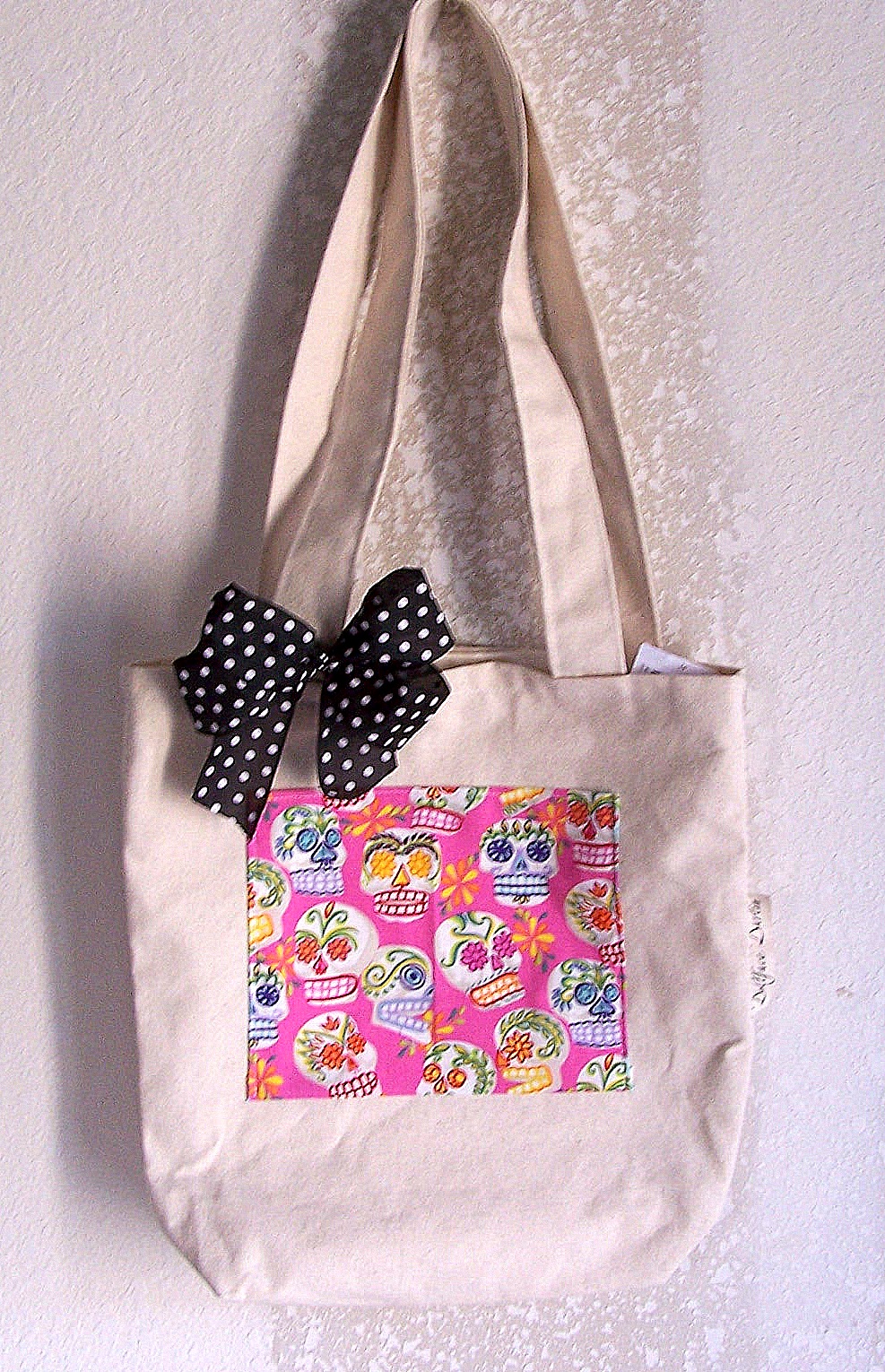 Drop-dead gorgeous Tote Bag with Pink Sugar Skulls! on SALE now. Was $15.00 – marked down to $10. Hurry before it’s gone!