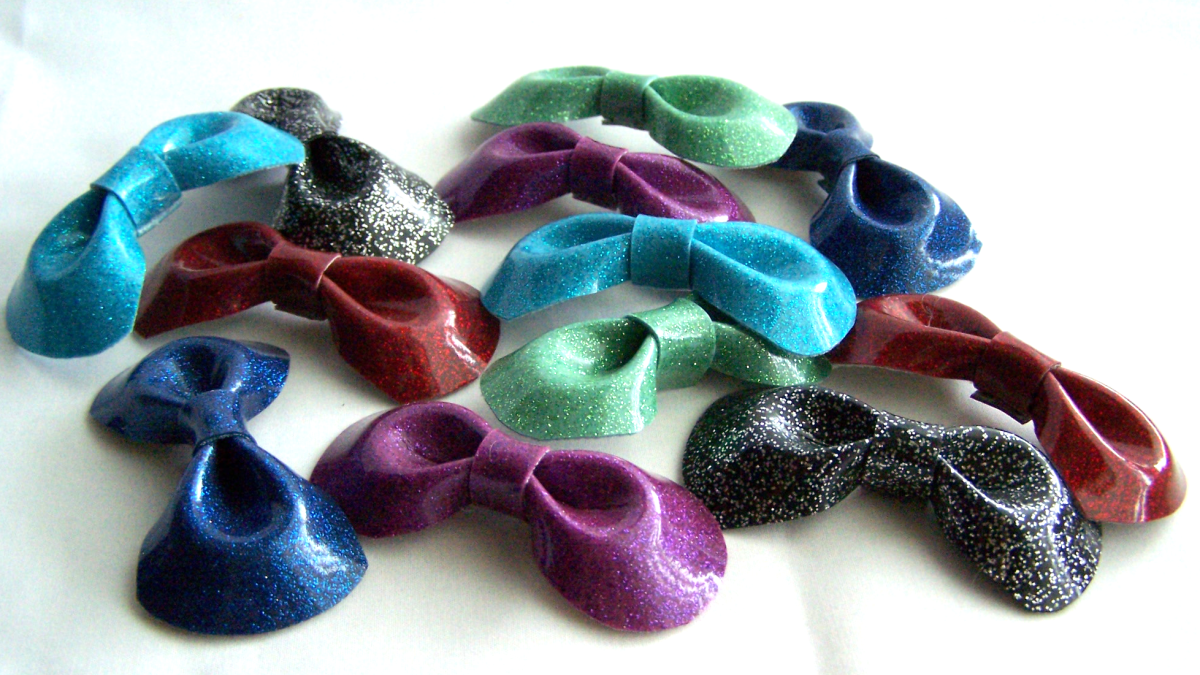 These Metal Flake Vinyl Bows are hand-made and are crafted using automotive upholstery quality vinyl! To ensure comfort and stability, each clip has been covered with fabric.